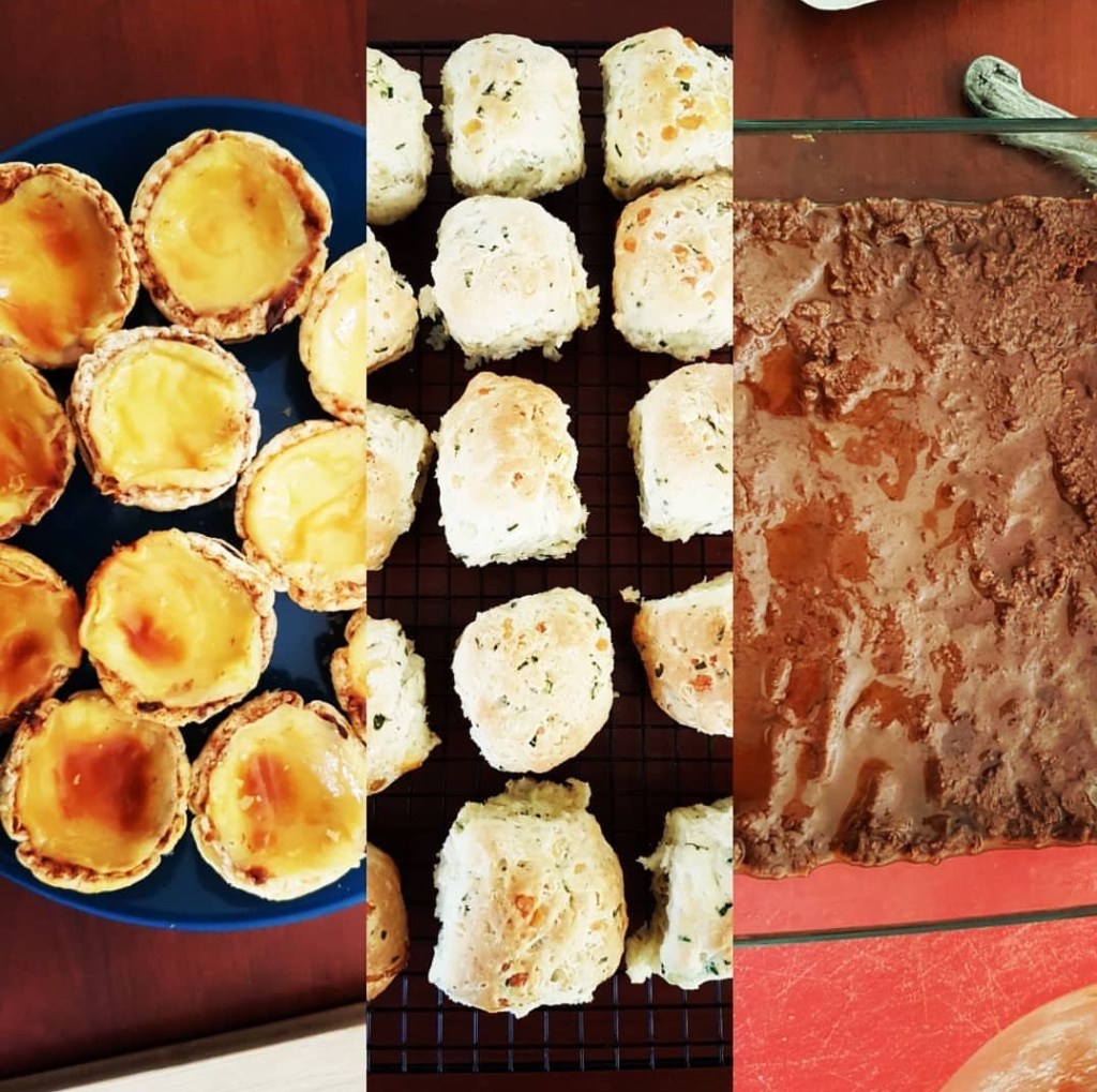 Bakes 18, 19 and 20: Portuguese Tarts, Cheese and Chives Scones, Tim Tam Slice